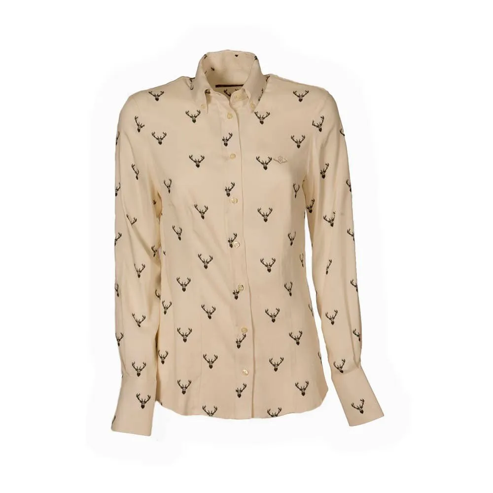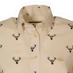 Light fabric, button neck, front -embroidered logo, two buttons in fists.