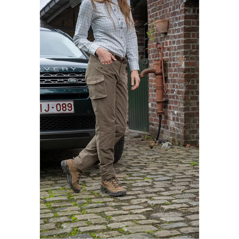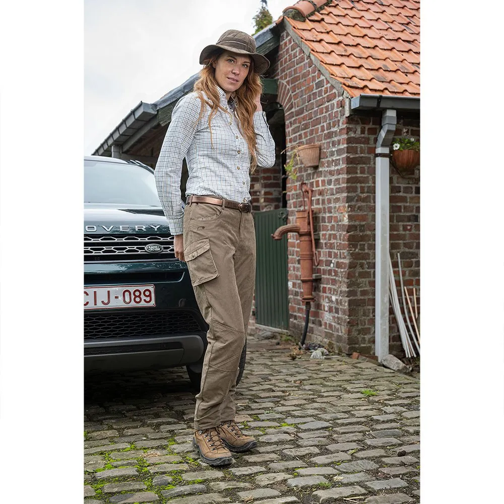 The ladies Esher cargo pant is made from a strong shell fabric and is trimmed with our popular printed tweed fabric. Practical and stylish.