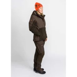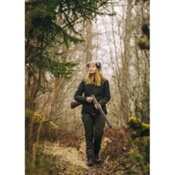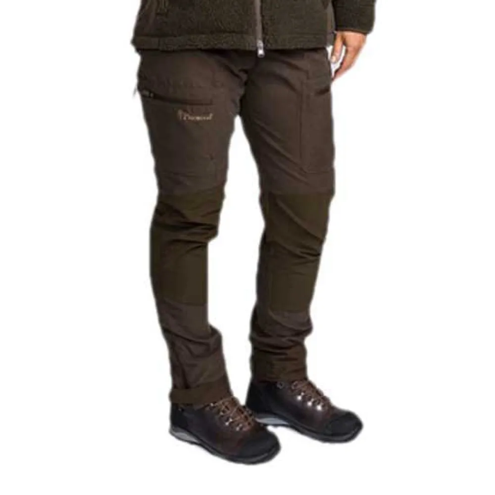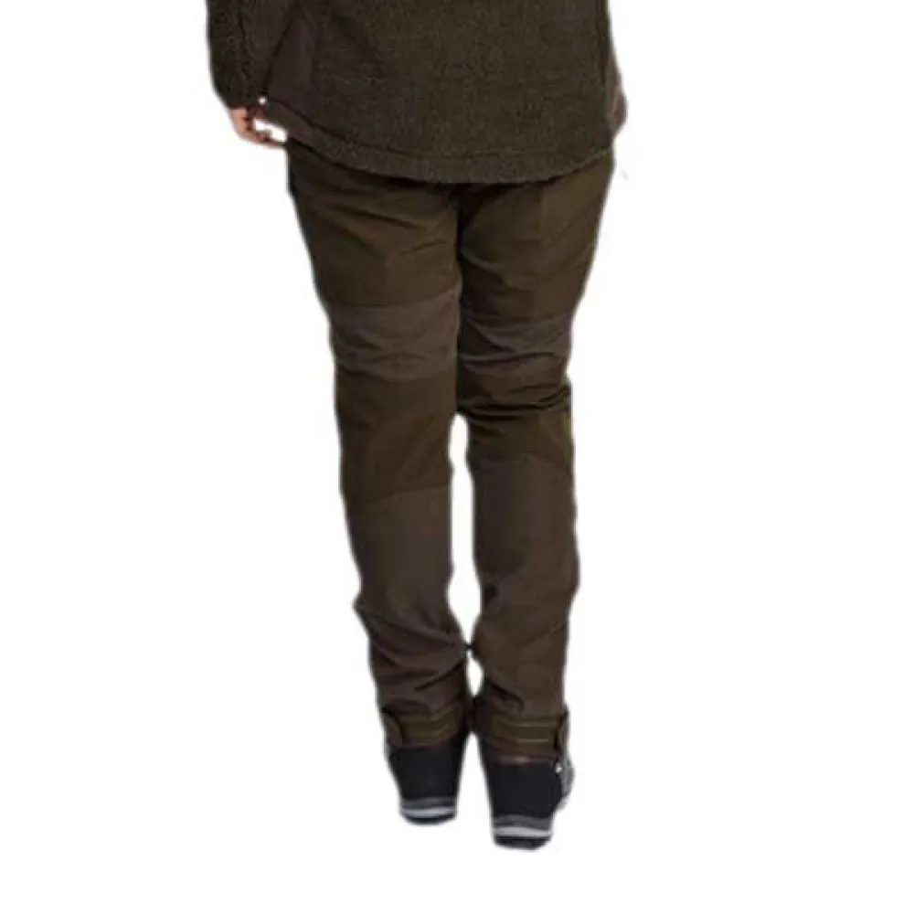 Hunting- and outdoor trousers in regular fit, feminine cut. The trousers have sturdy elements of 4-way stretch material on knee and back for optimal comfort. Treated with organic impregnation-Bionic Finish® Eco for extra water and dirt repellent properties. Articulated knees, dual leg pockets with zipper and openable ventilation for extra air flow. Elastic waist. Leg hems have zip and are adjustable with grip fastener.