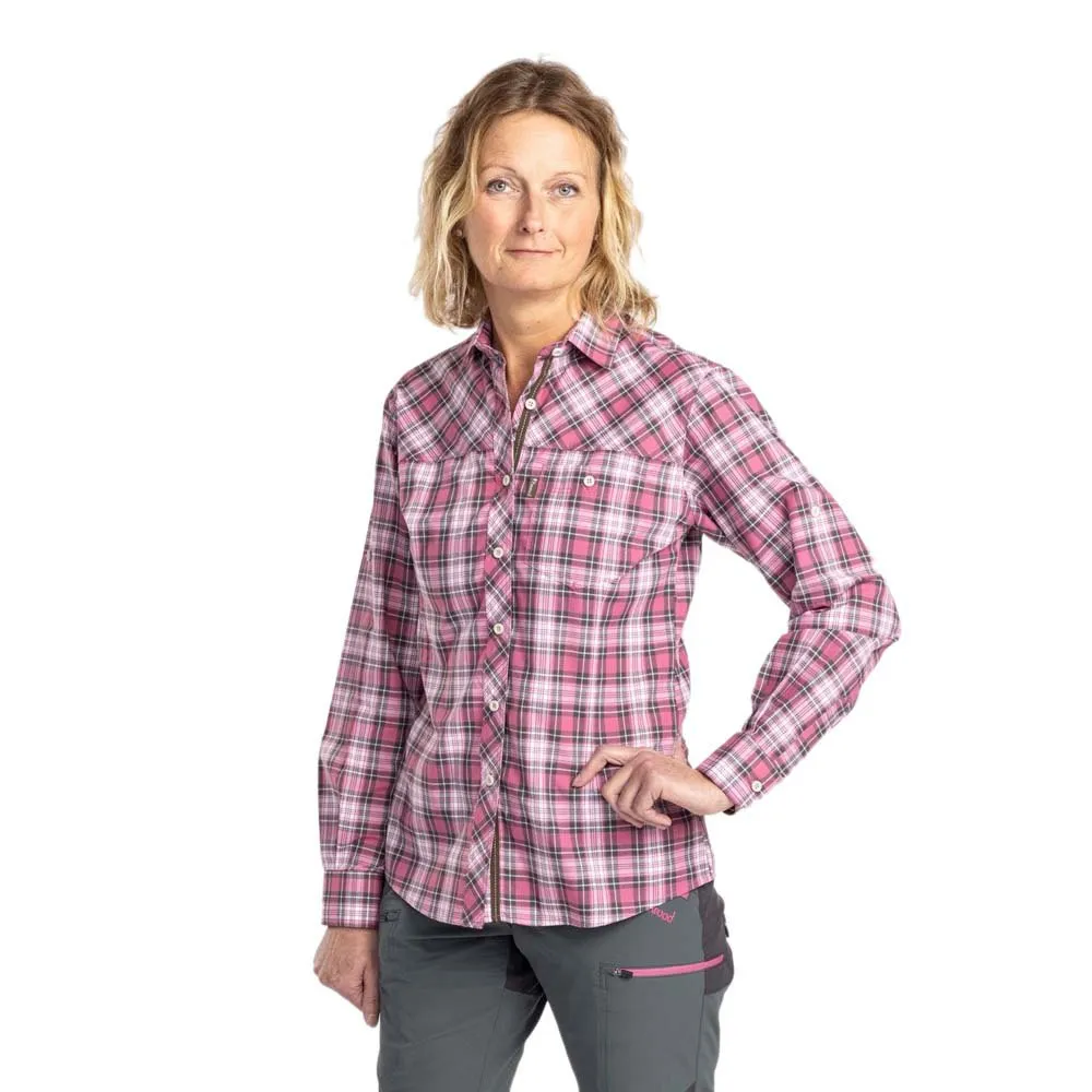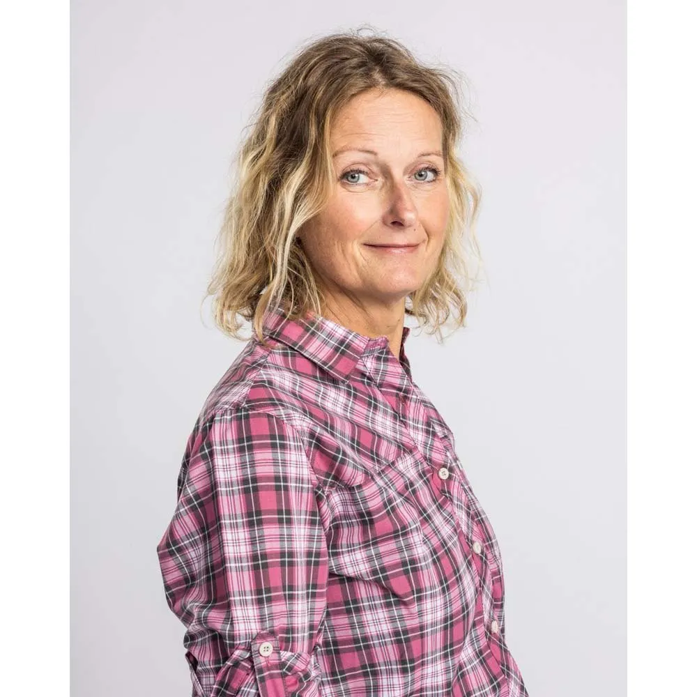 Stylish and feminine cut shirt in easy-care material. Single chest pocket without flap. The internal strap makes it possible to secure rolled up sleeves.