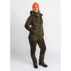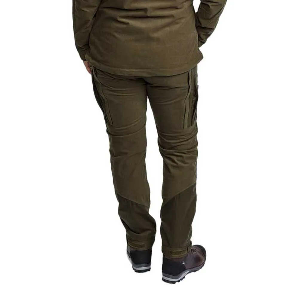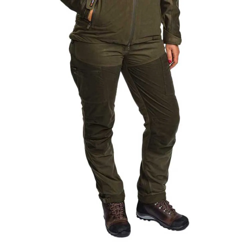 Silent and lightweight trousers for the active hunter and dog tracker. Wind and waterproof membrane. Elastic waist. Ammunition holder inside leg pocket. Ventilation along the sides. Taped seams. Adjustable leg. Boothook.