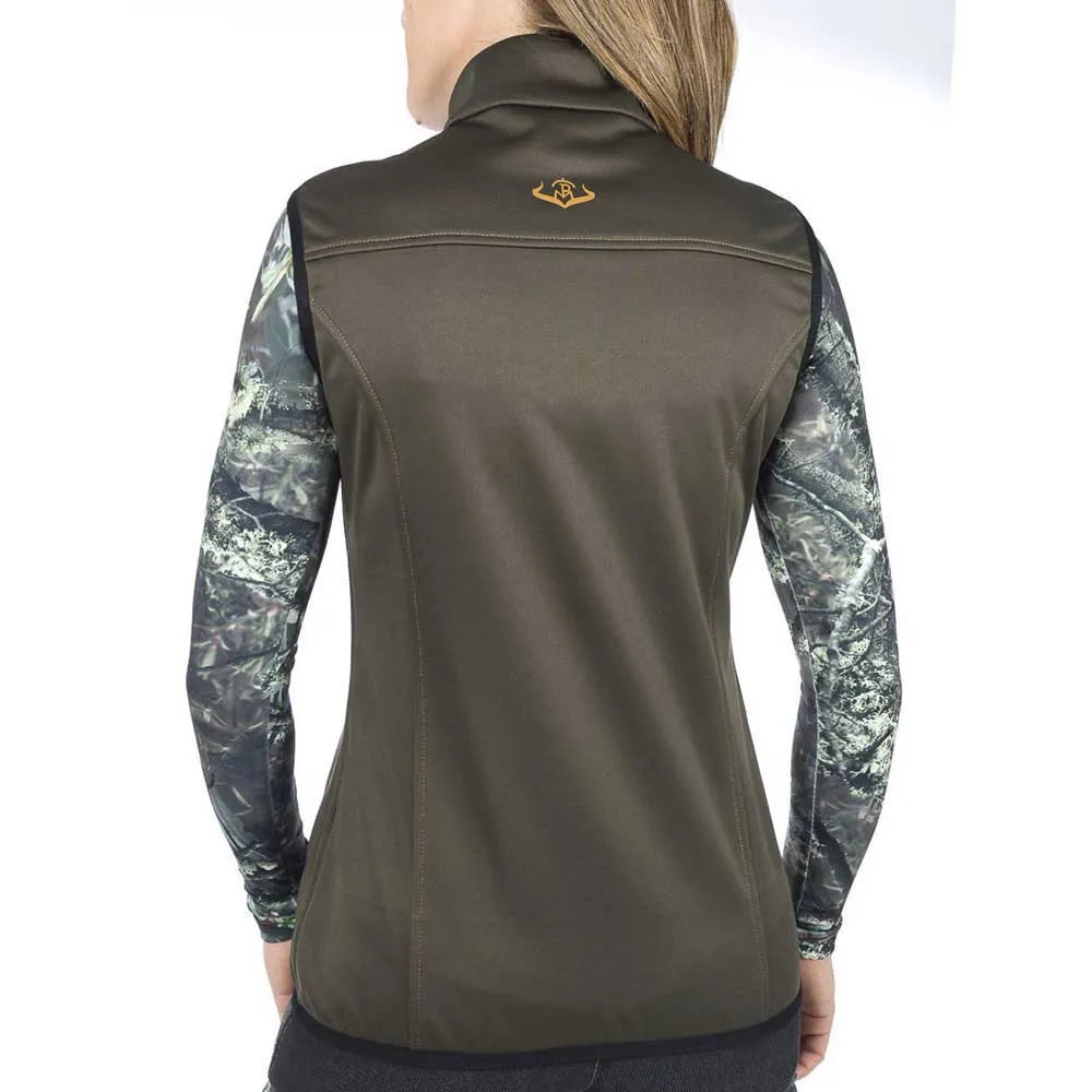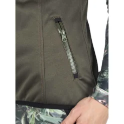 Women’s khaki Soft Shell vest 300 grams and with a windproof membrane, resistance to a maximum water curtain while allowing a very high breathability. High comfort due to its elasticity. Reinforcements and details in elastic fabric resistant to friction and cut, waterproof zippers.