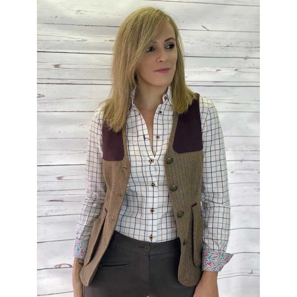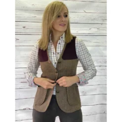– Shooting vest made of tweed and Suede.